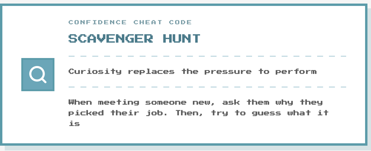 Instead of asking the boring, “What do you do?”, play the scavenger hunt.